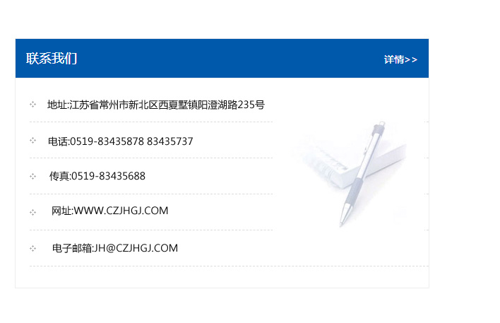 傳真:0519-83435688    郵編:213135    網址:WWW.czjhgj_com.cn-jieyuan.com    電子郵箱:JH@czjhgj_com.cn-jieyuan.com
